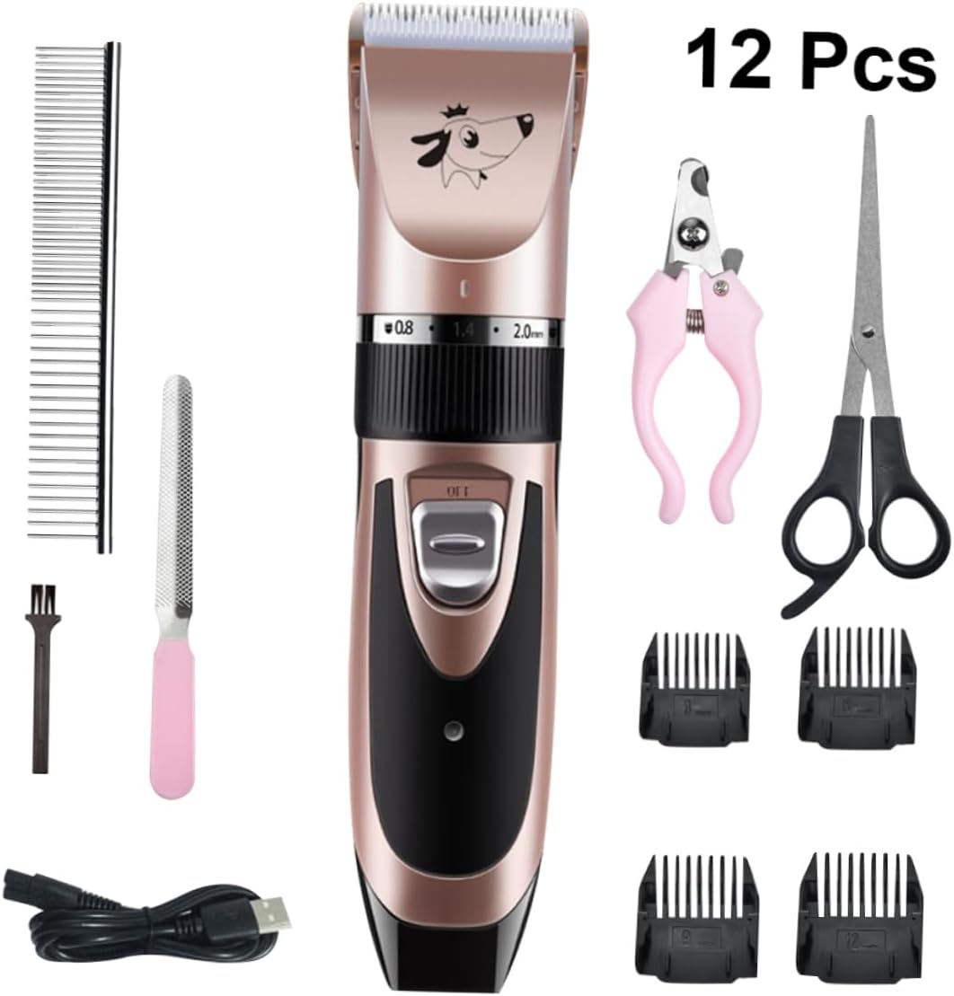Package List 1 x set of pet hair trimmers Features - Battery Capacity: 1500 mah dog clipper. - Material: Plastic and ceramic pet clippers for dogs. - Working Hours: About 120 minutes. - Motor: 3.7V. - Size: Approx. 18.5 x 4.5 x 4.3cm. - Charging Mode: USB. - Color: Rose Gold. - Obtuse and ceramic head design, hair trimming safely and can not hurt skin cat hair trimmer. - USB charging is more convenient pet clippers. - -slip design is easy to hold pet hair trimmer. - Without work noise. Cuting hair of you pet is easier dog hair trimmer. - The tool head can be removed and cleaned directly with the water faucet.Goods Descriptionpet clippers This pet clipper keeps your pets always looking , it's very useful both in home and profession salon use! Made of material, safe and practical.dog hair trimmer This professional pet clipper will provide your pets with excellent cutting experience
