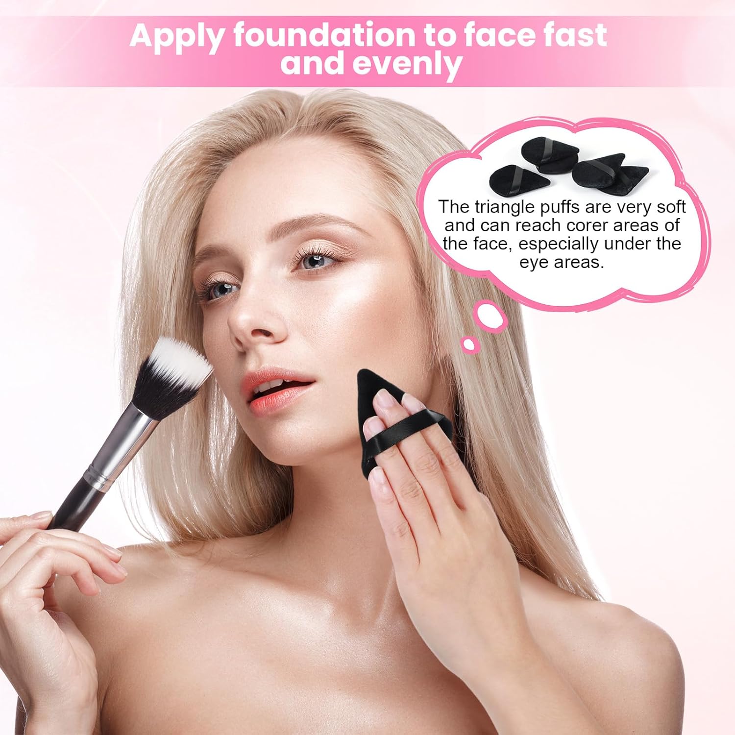 Welcome to our store!Package Includes: 250 Pcs x Powder Puff Face Soft Triangle Makeup PuffSpecifications:Material: FlockingColor: BlackSize: 2.76 x 2.56 x 0.59 InchesNotes: Manual measurement, please allow slight errors on size. The color may exist a slight difference due to different screen displays.