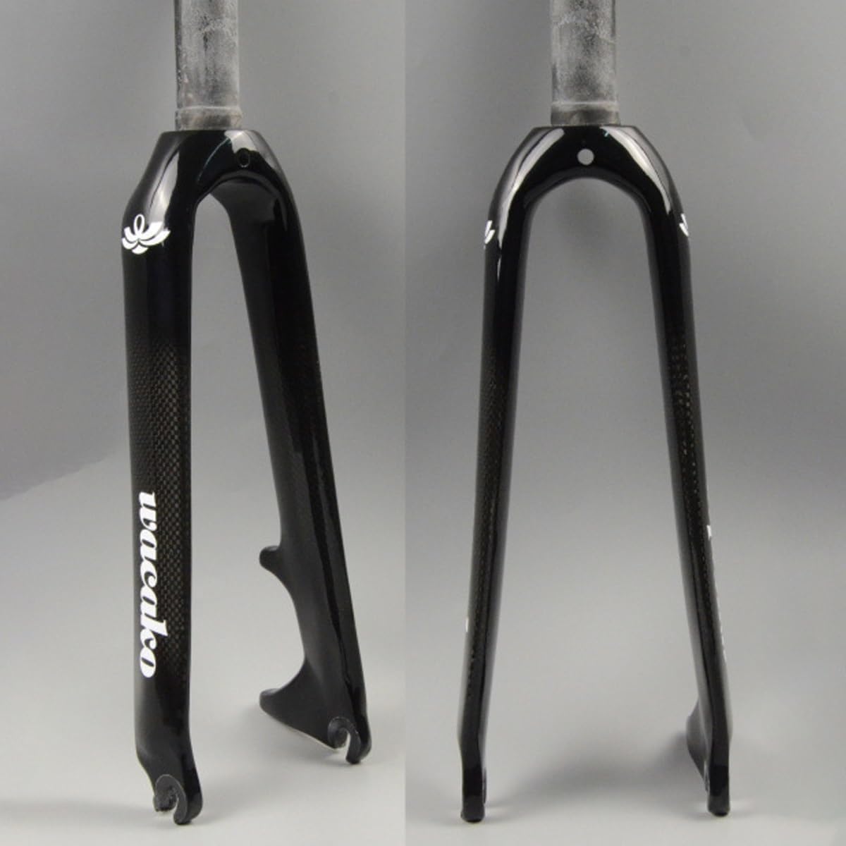 Carbon Fiber Folding Bikes Rigid Fork 14in 16in 18in 20in 22in Hard Fork C Brake 9*74/100mm Quick Release Front Fork 1-1/8" Straight Tube ThreadlessRigid Fork Information:Color: Glossy Black A,Matte Black A, Glossy Black B,Matte Black BSize: 14in 16in 18in 20in 22inMaterial: T700 carbon fiberSteerer tube type: 1-1/8" straightSteer Tube Diameter: 28.6mmBottom File: 30mmSteerer tube lenth: 390mmQuick Release Opening: 9*74/100mmBrake: Disc/C BrakeScope of application: Folding Bikes,Weight: About 380gPackage:Rigid Fork x 1Note:Please allow slight dimensional tolerances due to manual measurements, lighting in photography may cause color differences from real life.Please check the size details in our list carefully according to the actual condition of your Bikes to make sure you buy the fit fork.Due to different production batches, there may be slight differences in the color, appearance, shape, and details of individual parts. If you have any questions, please feel free to contact us, thank you!