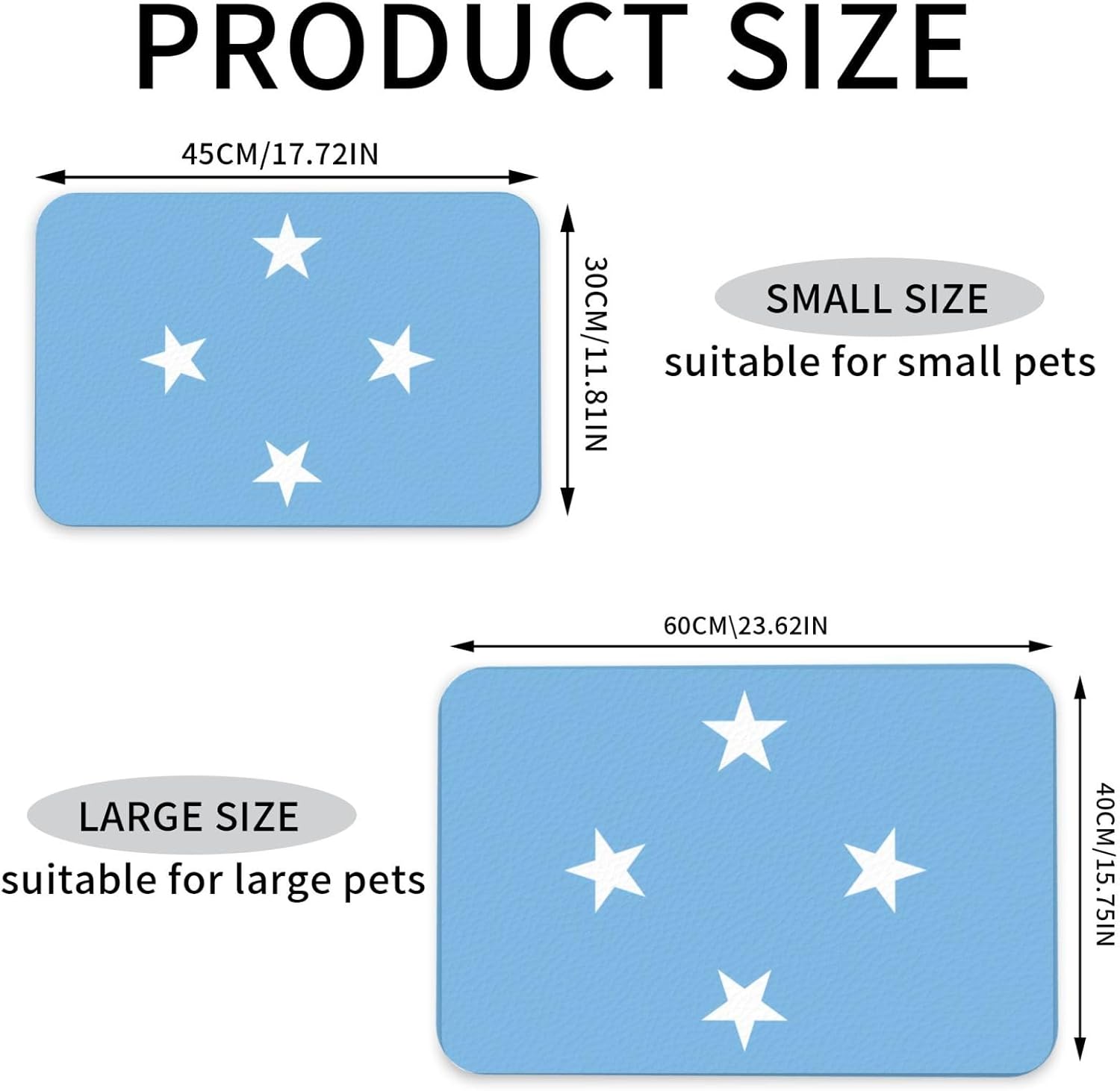 Transform your pet's mealtime experience with our high-quality Pet Absorbent Leather Tablecloth Foldable Non-Slip Placemat. Our Flag of Micronesia print pet feeding mats are made of high quality and durable material that can withstand scratches, tears and daily wear and tear. The cute Flag of Micronesia print pattern design on the mat adds a splash of color to your pet's feeding area and enjoy more fun. Whether you have a dog, cat, or another furry friend, this versatile product ensures cleanliness by preventing liquids from seeping through and damaging floors.The placemat's superior absorbency quickly dries any spilled water or food, keeping both your pet and surroundings tidy.For added practicality, the 40x60cm mat is foldable and reusable, allowing you to store it conveniently or carry it along during travels. Cleaning is a breeze - you can either rinse it thoroughly or simply wipe it clean.
