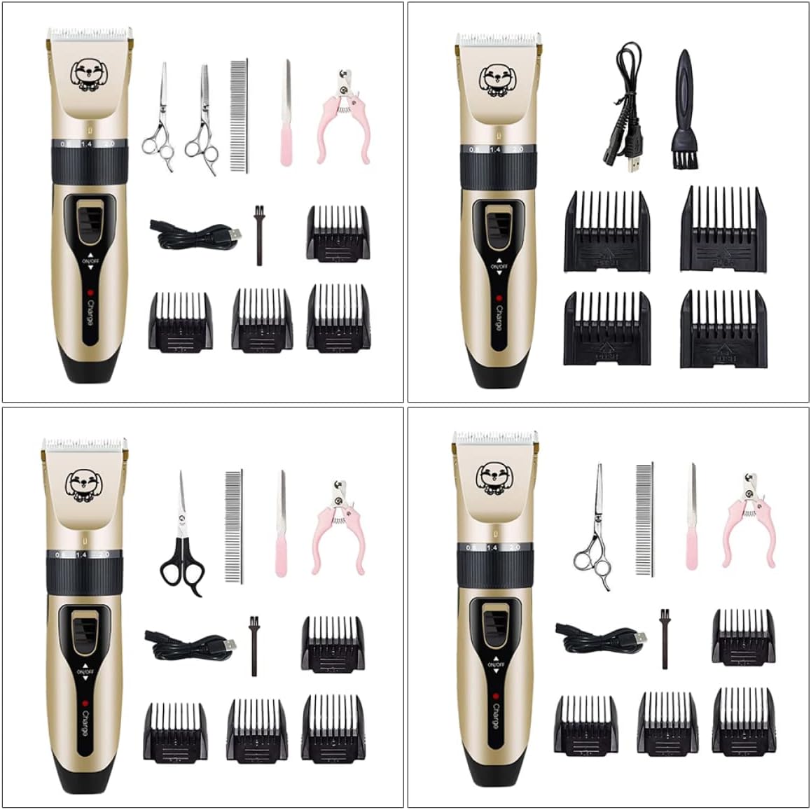 Package List 1 x set of pet hair trimmers Characteristics - Package Size: Approx. 25 x 17 x 6cm pet clippers for dogs. - Material: ABS, ceramic and metal pet hair trimmer. - Charging time: 3 hours. - Color: Golden. - Rated voltage: 100 v-200 v. - Battery capacity: 1200 ma. - is smooth, it will help give your pet appearance pet clippers. - Power strong, endurance stable trimming pet hair scissor. - Ceramic head design is safe to cut pet hair dog hair trimmer. - Without work noise. Cuting hair of you pet is easier dog clipper. - Hair trimming safely and can not hurt skin.Goods Informationpet clippers for dogs This professional pet clipper will provide your pets with excellent cutting experience.pet clippers This set of pet clipper keeps your pets always looking , it's very useful both in home and profession salon use! Made of material, safe and practical