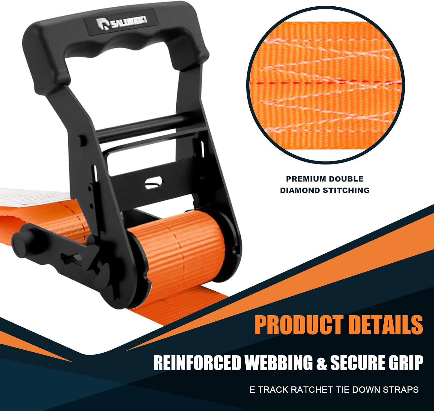 SALUINOKI E-Track Ratchet Straps 2" x 16ft Heavy Duty, Box Truck Cargo Strap, Etrack Accessories, 2200lbs Working Load for Trailer Orange 6 Pack