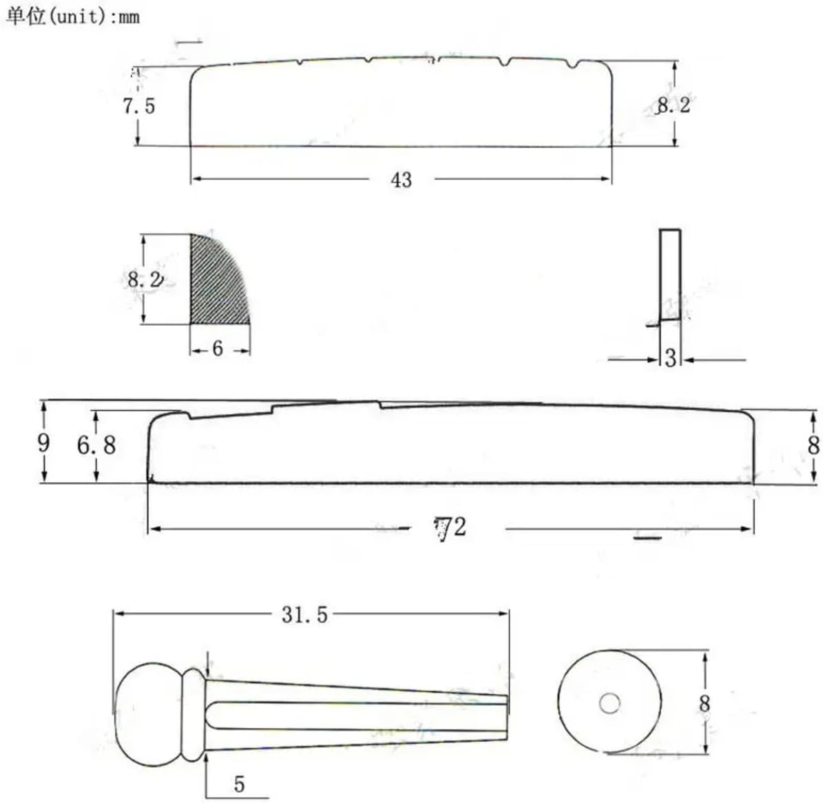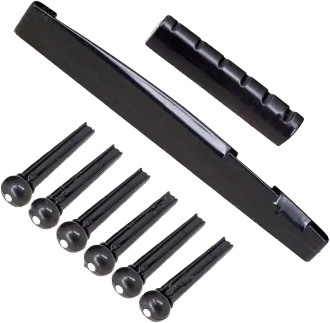 This acoustic guitar replacement kit is intended for 6 string maintenance and repair work where the bridge pins, saddle, and nut need to be replaced as a matched parts group. The set combines 6 bridge string pins with 1 saddle and 1 nut, making it suitable for restringing tasks, routine service, worn-part exchange, and hardware refresh work on acoustic guitar setups that use compatible dimensions. It addresses a common purchase need in this category: restoring key string contact and retention parts without sourcing each component separately. The kit is best suited to repair benches, home maintenance setups, and restringing workflows where bridge-end parts and string path contact components are serviced together. For accurate selection, buyers should compare pin diameter, saddle slot length, saddle height, nut width, nut height, bridge hole size, and overall string spacing against the installed parts before purchase. This fit check is especially important on modified or nonstandard instruments, since replacement dimensions can vary across production runs and prior repair work. The set is suitable for practical replacement demand where installation planning, dimensional verification, and routine acoustic guitar upkeep are the main purchase drivers.