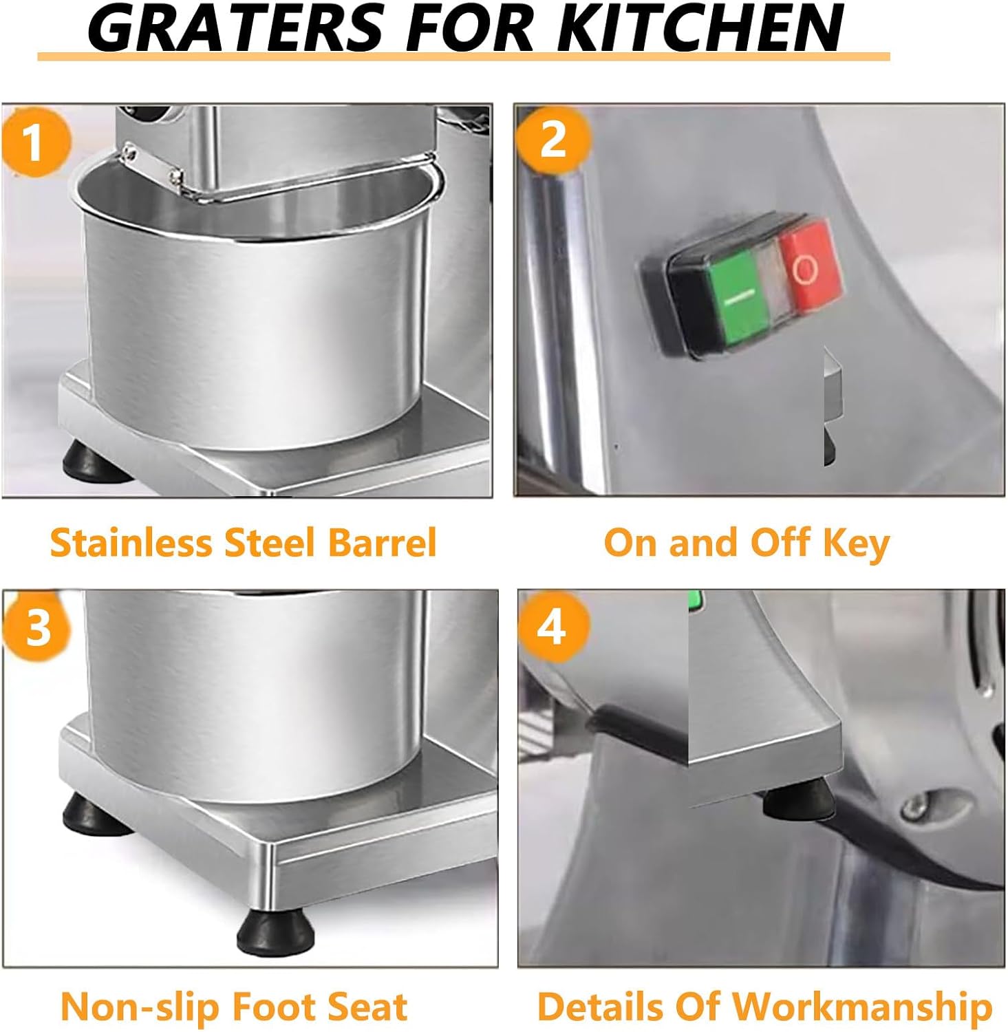 Are you still struggling with making cheese, breadcrumbs, or butter? SpecificationsMaterial: 304 stainless steel blades + aluminum alloy body Power: 900W Dimensions: 49*32.5*48.5cm Weight: 16kg Ideal for: Pizza shops, bakeries, restaurants, home kitchens Package includes1× Commercial cheese grater
