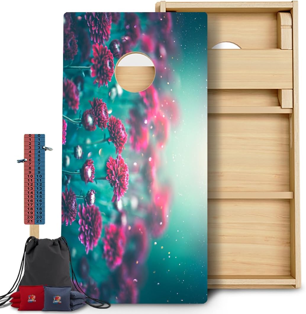 Experience the cornhole perfection with our handmade super high-quality best cornhole boards. Made with cabinet grade 3/4" baltic birch wood for smoothness, stability, and strength. These pro cornhole boards are built to last for decades. Boards are sealed with 4 coats of premium clear gloss polyurethane for protection and durability. Elevate your corn hole games and own truly exceptional cornhole boards. With our new, advanced technology we directly print the design into the wood grain! This creates a vibrant, high quality, longer lasting Image + a water & scratch resistant seal! Bags are double stitched with heavy duty upholstery thread and made of premium durable "duck" canvas. We personally make each bag using an industrial sewing machine for the most durable bags available. Made in America... our bags are made to last! *Holes are cut to a precise 6" diameter. Legs are collapsible and fold under for easy storage and transportation. No assembly required...simply fold out the legs and you're ready to PLAY!