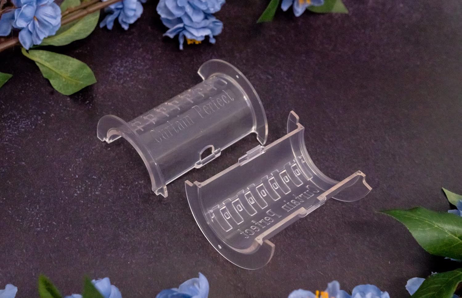 Curtain Perfect spacers enhance the beauty of your curtains by providing fullness, movement and functionality throughout your home. Our clear plastic design allows for the spacers to remain unnoticed throughout your home, tucked neatly behind your curtains. Our spacers also move freely back-and-forth along your curtain rod so you can easily open and close your drapery throughout the day, as desired. With a snap-on design, they are easy to install onto any curtain rod (without the hassel of having to remove the rod or curtains) and can be reused over-and-over again as you refresh your decor.