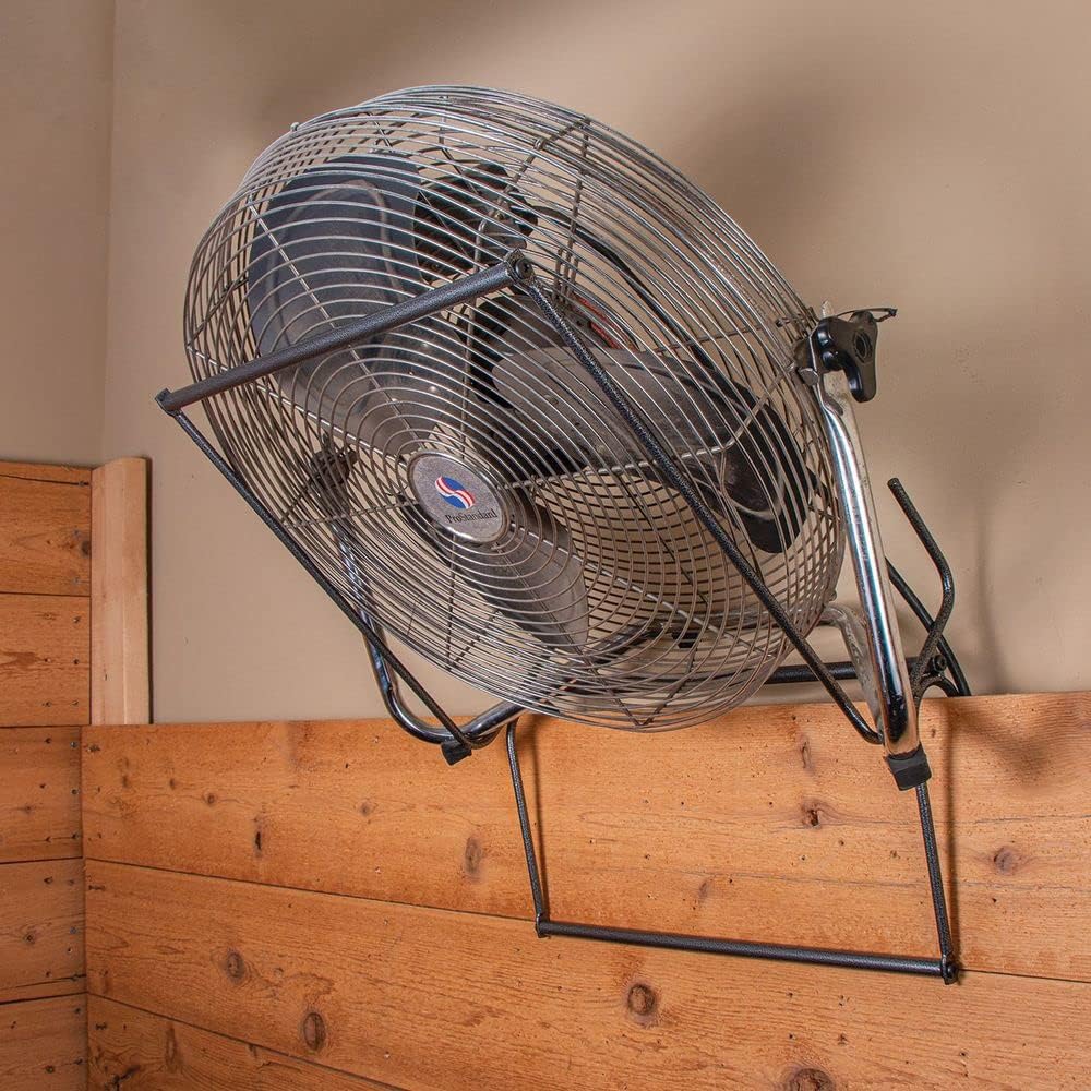 Introducing the Easy-Up Fan Holder the ultimate solution for effortlessly mounting your horse's fan and ensuring a comfortable environment. This fan holder is designed for ease of use eliminating the hassle of zip ties and straps with its simple installation process. Capable of holding any standard box fan up to 6' wide it ensures optimal air circulation in your horse's stall keeping them cool and reducing the presence of flies.Perfect for use in horse stalls at home or during horse shows the Easy-Up Fan Holder fits over any standard stall wall up to 2" wide making it a versatile addition to your barn setup. Its durable gray armor coat finish provides long-lasting support and the holder measures 22" long by 16 1/2" wide when assembled.