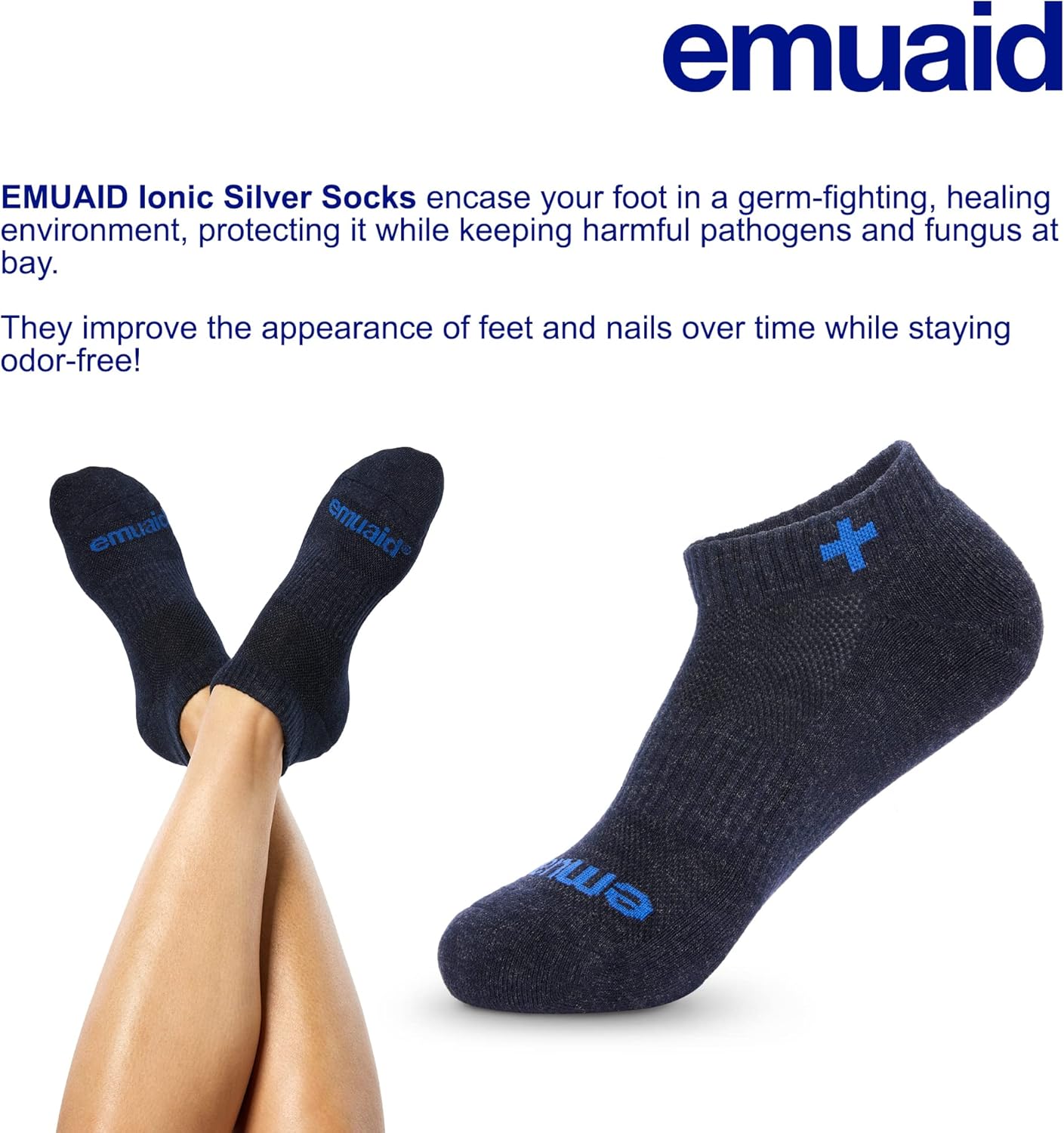 These socks are designed to provide contoured compression to ease swelling and achy feet. Works best with a layer of EMUAID Ointment on pesky conditions: Nail Fungus, Athlete’s Foot, and other itchy, painful, and unsightly conditions.