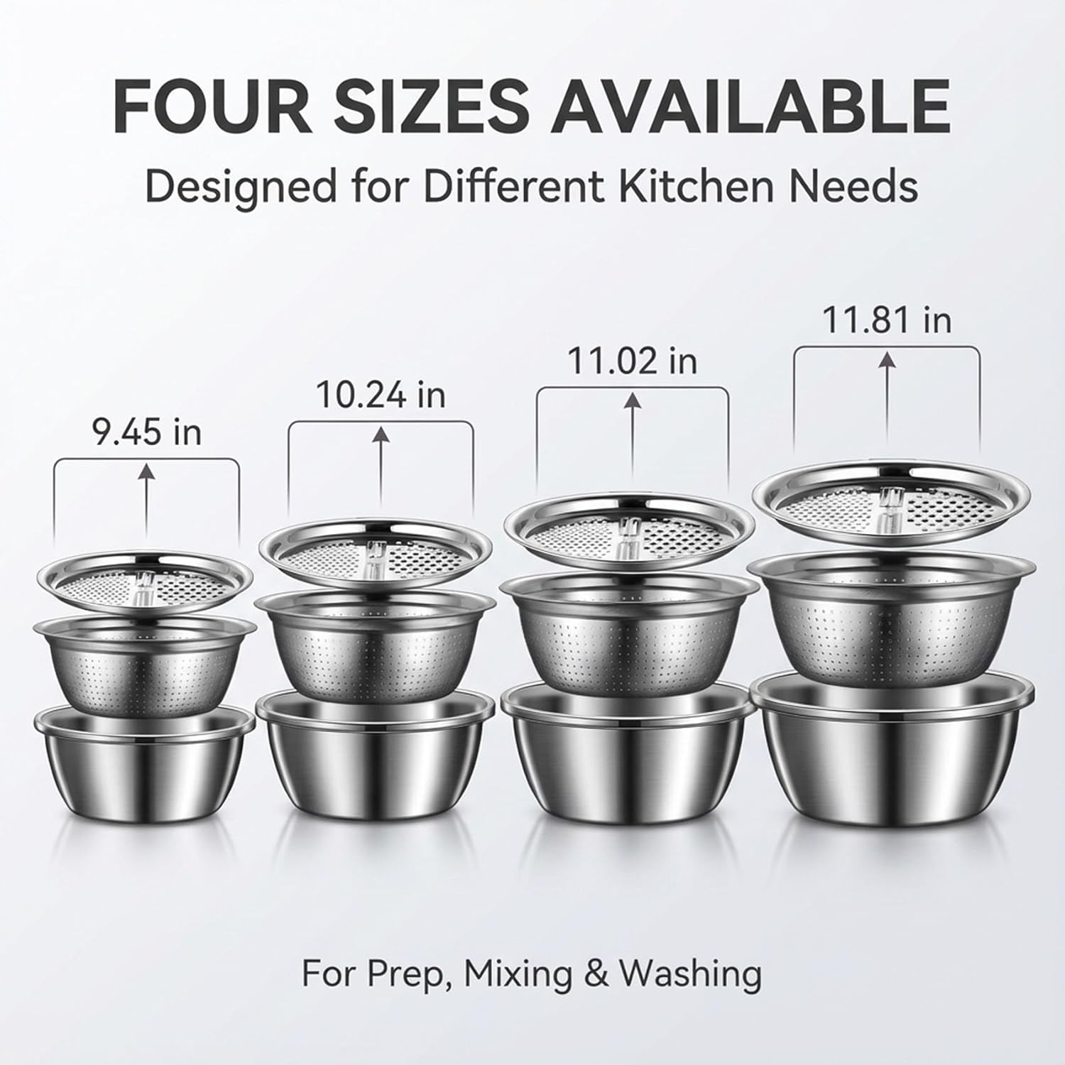 ---------------------------------------------Welcome to Our Store!---------------------------------------------- If you have any problems, please let us know. Our serives will contact you within 24 hours =================================================================================== Feature: Multifunctional Stainless Steel Basin Multifunctional Shredder High-Quality Material Easy to Clean and Store User-Friendly Design Specification: Name: German Quality 3-in-1 Stainless Steel Grater Bowl Material: Stainless Steel Color: Silver Size: 9.45in/10.24in/11.02in/11.81in Package Includes: 1set * German Quality 3-in-1 Stainless Steel Grater Bowl Note: 1.Due to manual measurement, please allow an error of 0-1cm. Please make sure you don’t mind before bidding.