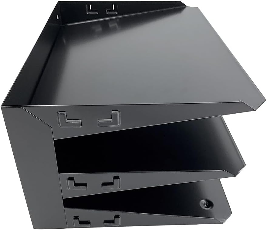 Keep your important paperwork organized with this contemporary desk organizer. It can be mounted to a wall, or placed on the surface of a desk. Each slot contains a label holder on both sides to easily identify the categories or topics that you assign. This organizer can be used alone or mixed and matched with other coordinating Huron accessories. *Made of long lasting durable steel *3 Slots/Trays for storing up to 2.75 in of paperwork *Can be wall mounted or placed on a desk *Trays can be easily labeled with the label holders on each side - holds a .5 in x 1.75 in label