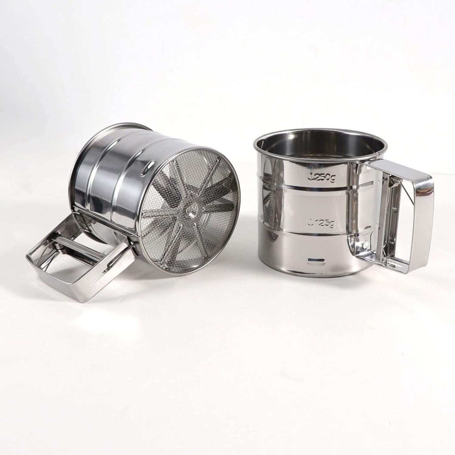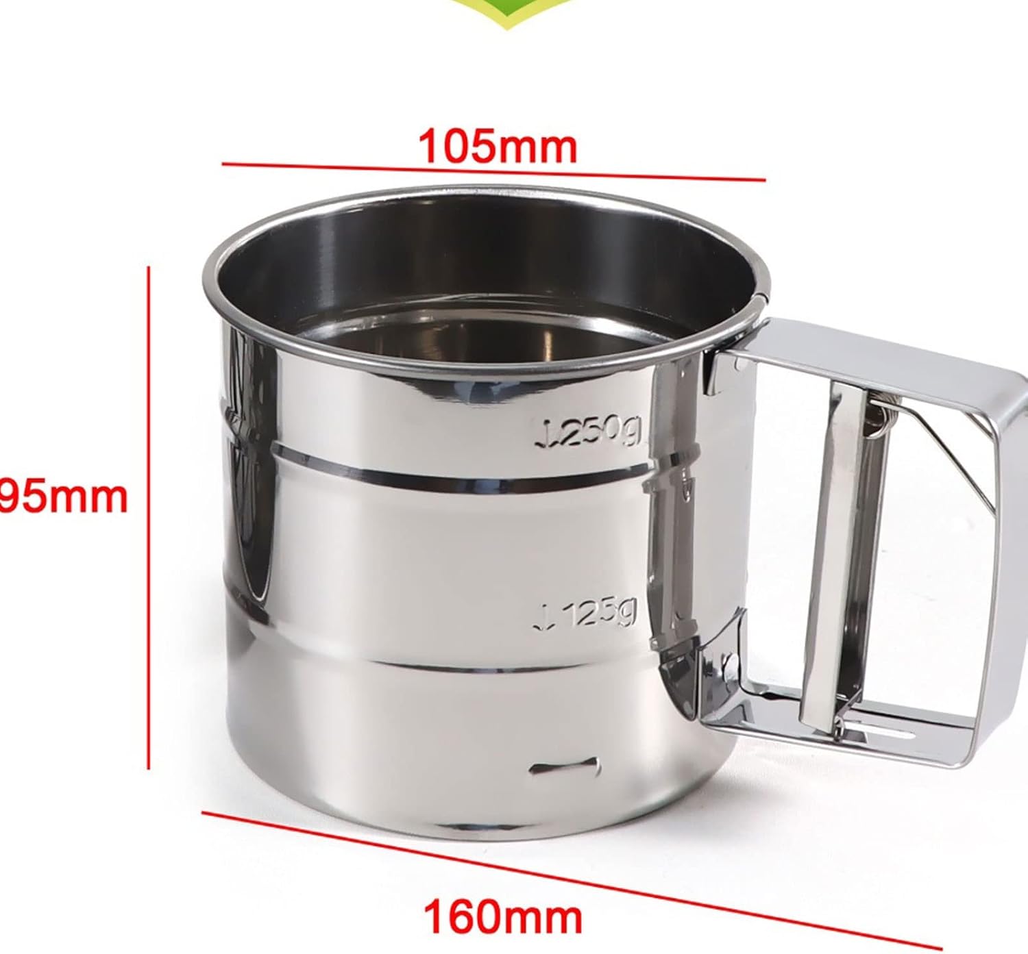 LEIXIUSMItem Type: Flour SieveMaterial: 410 stainless steelApplication: shaker cupColor: Stainless SteelSize: 160*105*95mm