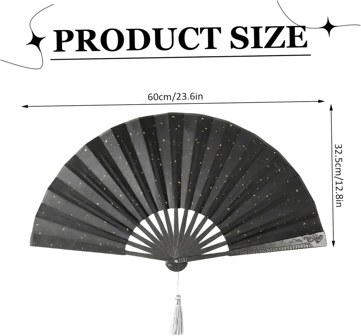 Description: Experience the elegance of traditional Chinese craftsmanship with our metal folding fan that combines artistic beauty with practical functionality. This exquisite hand fan features sturdy aluminum alloy ribs that provide reliable structure while resisting corrosion, ensuring long-term durability. The premium black silk surface displays intricate cloud and dragon patterns, symbolizing good fortune and power in Chinese culture. When fully unfolded, the fan measures 12.8x23.6 inches, offering optimal cooling coverage while maintaining graceful proportions. Perfect for both practical use and decorative display, this folding fan represents authentic oriental artistry that appeals to culture enthusiasts and collectors alike. Whether used for personal cooling, cultural events, or home decoration, this hand fan delivers exceptional quality and timeless aesthetic appeal that transcends ordinary accessories. Features:. -Color: Black. -Material: Aluminium Alloy. -Size: Unfolded: 32.5×60 cm / 12.8×23.6 inch. Note:Manual measurement, please allow slight errors on size.The colors may exist slight difference due to different screens. Package Including 1 * Metal Folding Fan