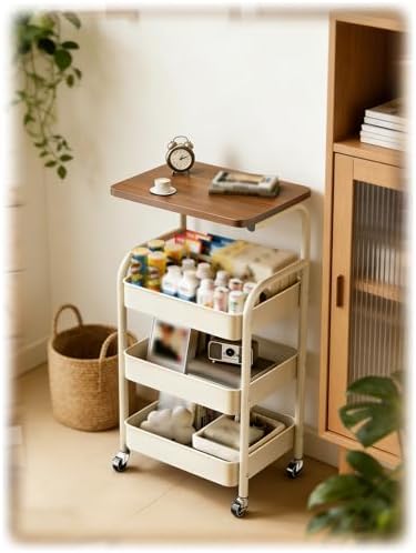 Introducing our versatile rolling cart, designed to enhance your organizational efforts in any space. With generous storage capacity, it provides ample room for toiletries, kitchen supplies, crafting materials, beauty products, and other everyday essentials, ensuring your environment stays tidy and well-organized. Equipped with smooth-rolling wheels, this trolley can be effortlessly moved from room to room, making it ideal for any situation where extra storage is needed. The robust metal frame ensures stability and durability, while its easy-to-clean surface makes it perfect for daily use. Its compact design makes it a smart solution that fits seamlessly into kitchens, bathrooms, craft rooms, and living areas. This multi-functional rolling cart serves various purposes, whether you need a kitchen trolley, bathroom organizer, craft station, beauty cart, book storage, or tea trolley. Assembly is straightforward, and the cart's practical design makes it an essential addition to your home organization strategy. Product details: - Size: 44x30x77cm / 44x30x103cm - Color options: Black / Cream - Quantity: 1 Please note: Due to varying lighting conditions, the color of the product may appear different in images compared to the actual item. Additionally, slight measurement discrepancies may occur due to manual measurement processes. Thank you for your understanding.