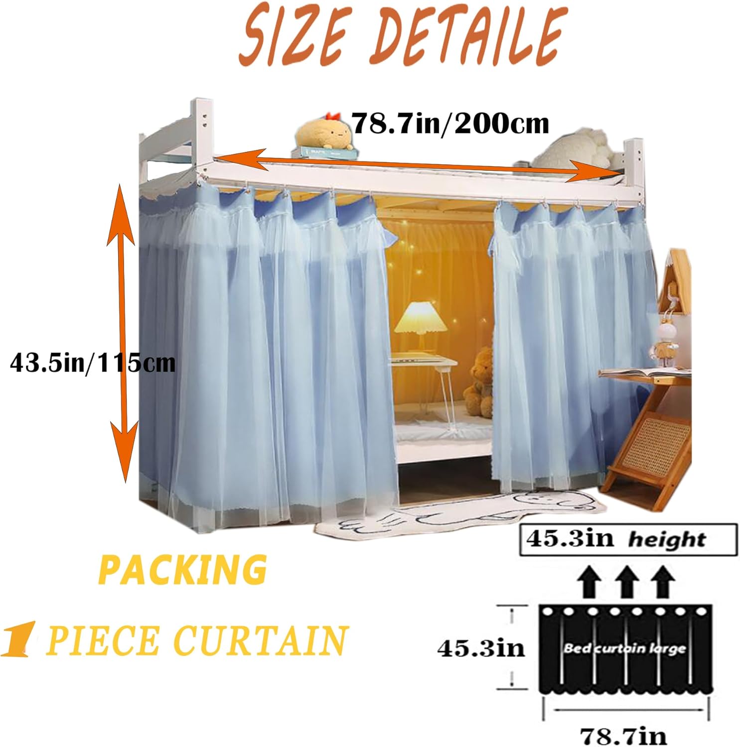 High quality Dormitory Bunk Bed CurtainsHigh Material: 100% Polyester. Medium thickness polyester cloth, durable and easy to wash.At the same time the fabric is soft and breathe well, offer you comfortable use experience in all the four seasons.Filter Approx 30% Light: The fabric can filter out 30% light, dark color has better light filtering effect than light color. We strictly check the quality of every product,Please rest assured to buy Simply hang the Black Out Canopy and you have an instant room, for a work desk, office, TV, work out place, privacy,etc. No matter at day or night, the curtain will make a more cozy environment for sleeping.Sensitive to light when you sleep. Black out the world with the Perfect Roommate---Bunk Bed Curtain."