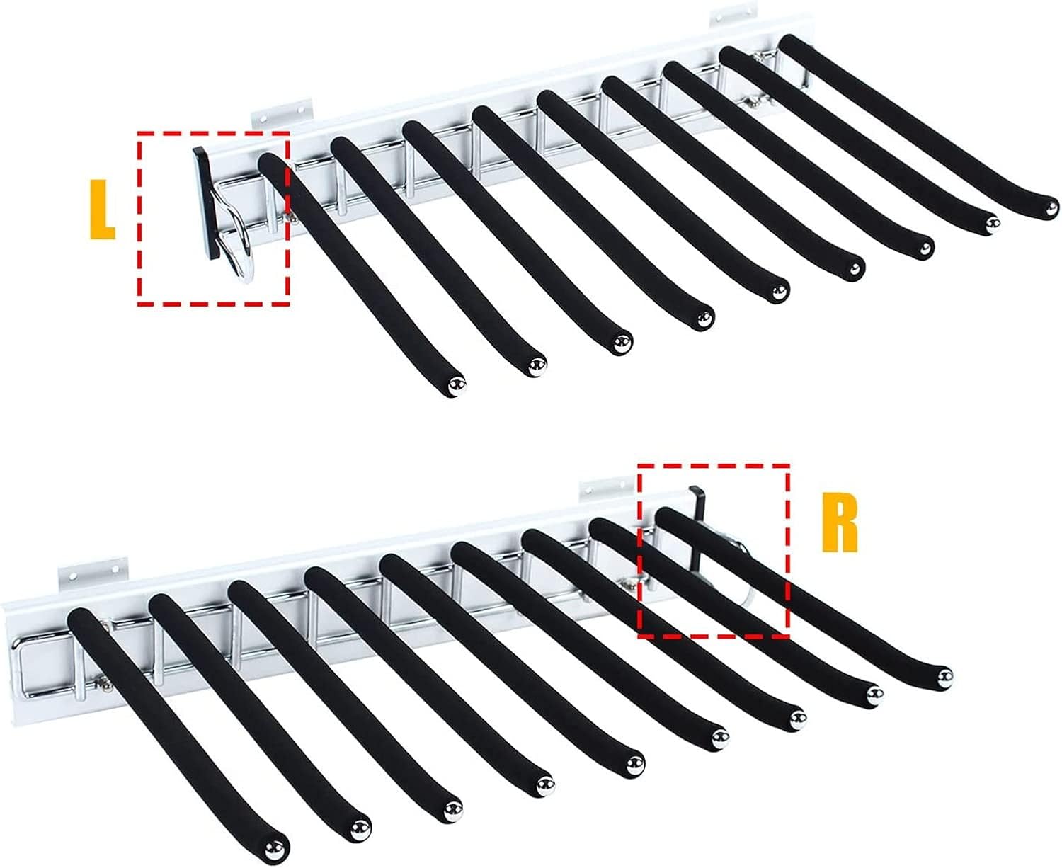 Features:◆ Silent Damping rail: equipped with cushioning rubber pads to effectively prevent the rails from pulling, and the mute effect is good◆ Environmentally-friendly ABS base: no peculiar smell, thick base, strong bearing capacity◆ Thickened body: high strength, toughness, and corrosion resistance◆ Solid pole: non-slip, durable, long-lasting rust◆ Prevent the trousers from sliding and keep the trousers free of wrinklesSpecification: - Color: Black- Material: Aluminum alloy + ABS + flocking- Product Dimensions: 46 x 32.6 cm- Rod-to-rod distance: 2.7cm/1.08in- Number of rods: 9- Cabinet depth requirements: ≥48CM/18.9inch- Cabinet width requirements: ≥35CM/13.7inch- Package included: 1 x Pull Out Trousers RackReminder:1. Due to manual measurement, please allow 1-2cm error.2. The picture is for reference only. View the actual product. Due to the influence of the monitor and light, the actual color may be slightly different from the image.3. Service: If you have any questions, please leave a message. We will reply you within 24 hours and provide the best service.