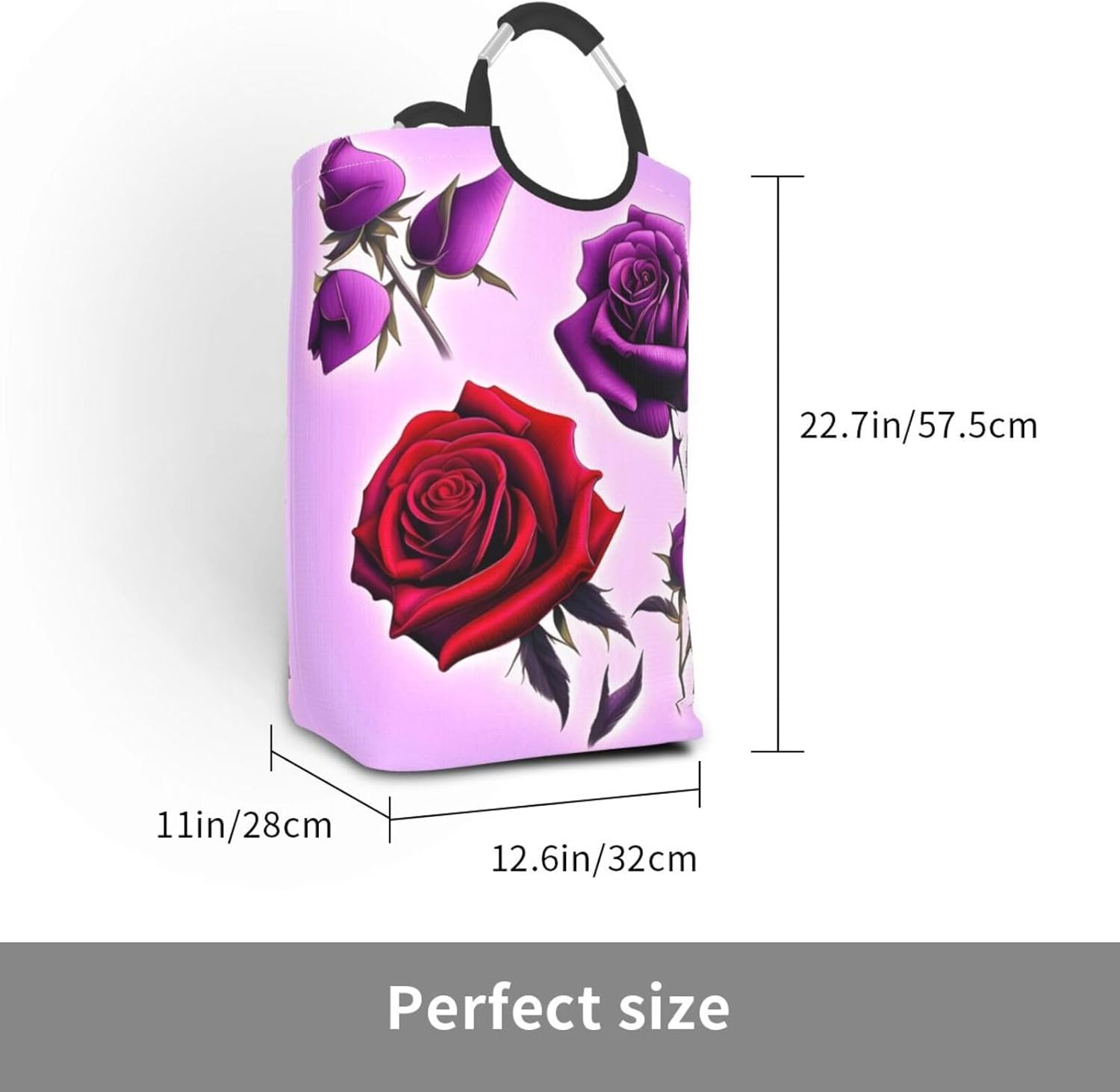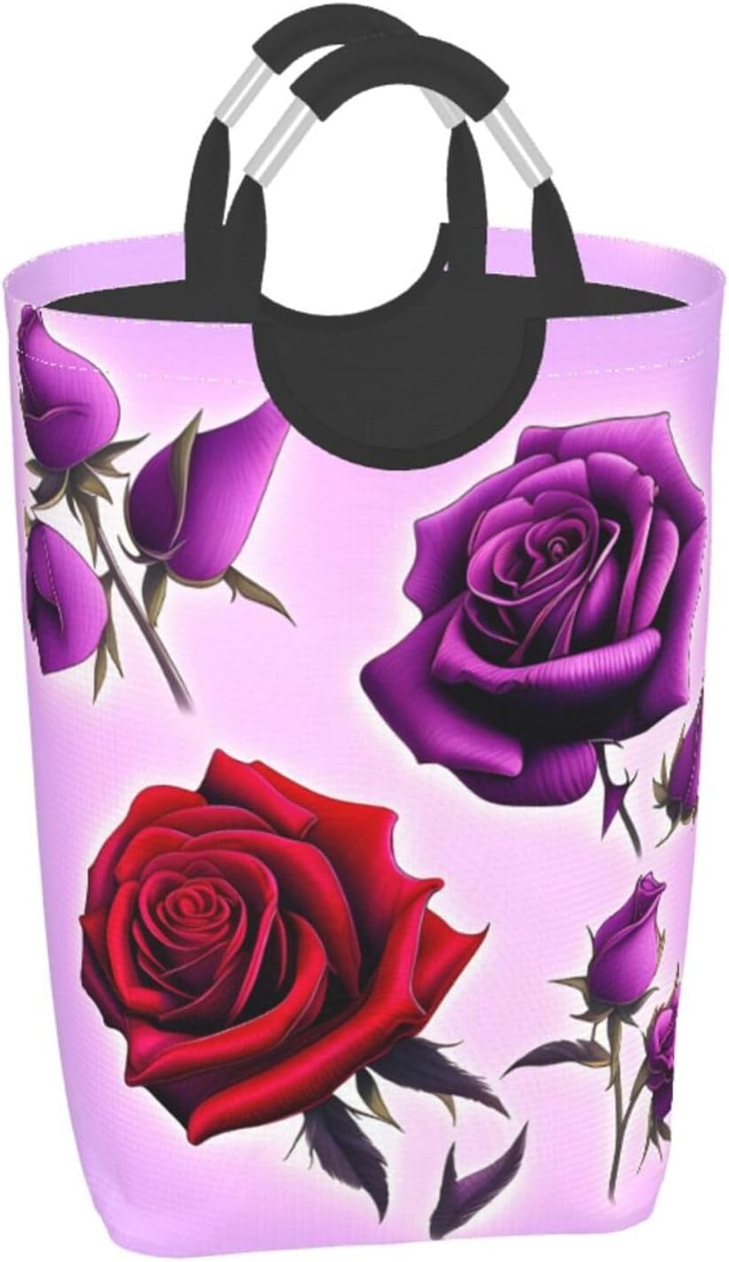 Our Red and purple roses dirty clothes storage bag is made of polyester, which is lightweight and flexible. It can maintain a stable shape even under heavy pressure and collision. At the same time, the incorporation of Oxford cloth material significantly improves the durability of the product, and it is resistant to wear, bumps and pulling. The storage bag is designed with a large capacity, which can easily carry winter clothes, daily clothes and a variety of sundries. It is easy to carry and store, and fits tightly into the gap of the suitcase after folding. The aluminum handle is sturdy and reliable, supports hanging, and is suitable for a variety of places. In terms of design, it adopts leak-proof technology, combined with waterproof coating and precision sewing, which is effectively waterproof. The exterior uses cutting-edge transfer technology, and a PE board support is added at the bottom to ensure stable load-bearing and prevent tipping. This storage bag is practical and easy to use, and is an ideal choice for travel and home.