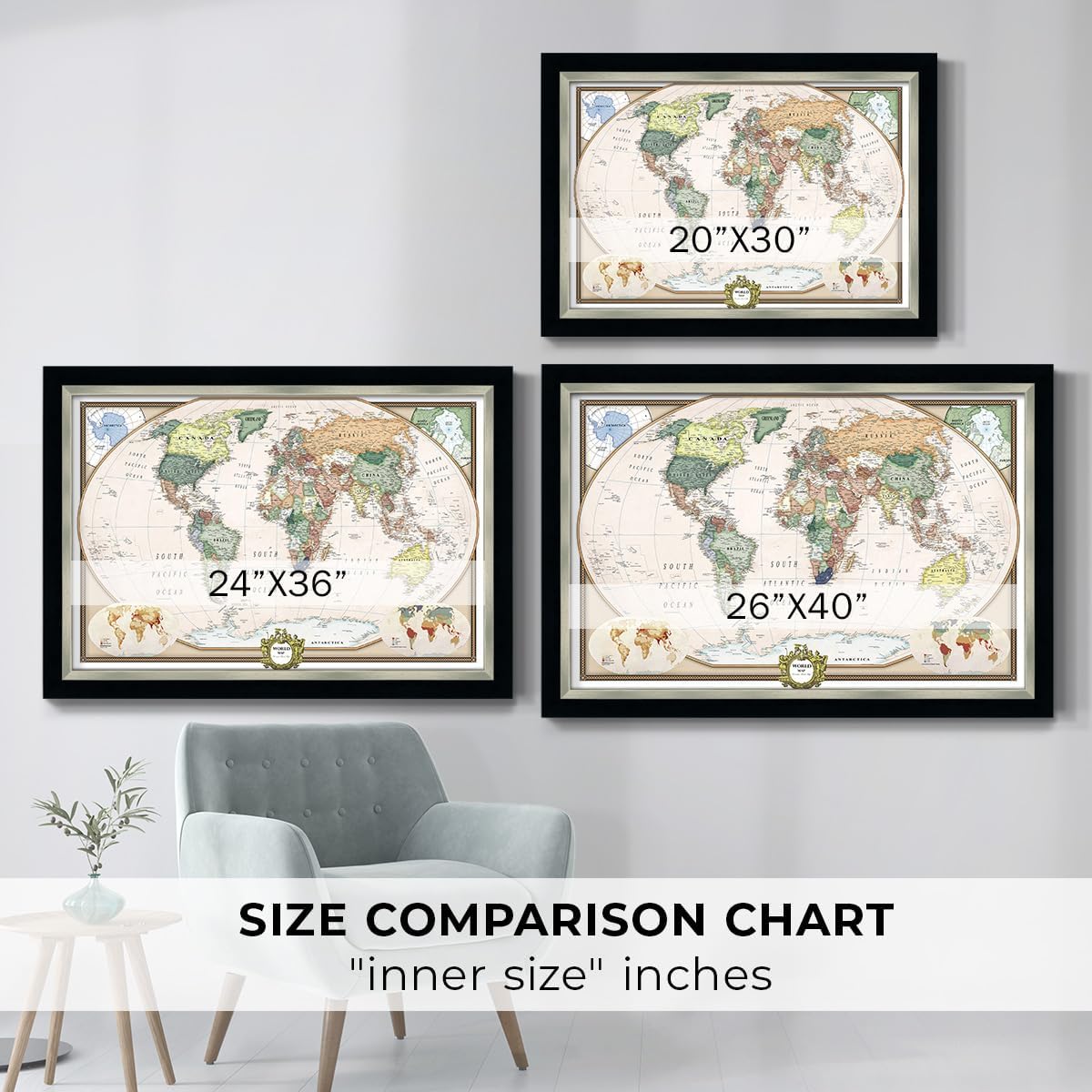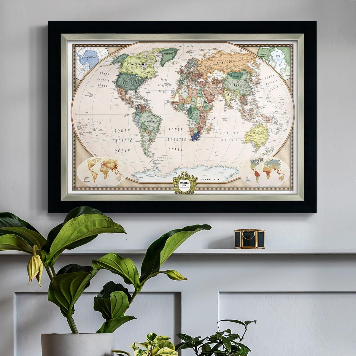 Bring a sense of adventure to home offices, studies, master suites, and more with this graphic art print on canvas. It features a detailed map of the world set in a handsome wood-toned frame. Plus, push pins are included so you can document the places you’ve been and the places you plan on seeing! If you run out of pins, any small push pin will work. And, with wall-mounting hardware included, this map arrives ready to hang.
