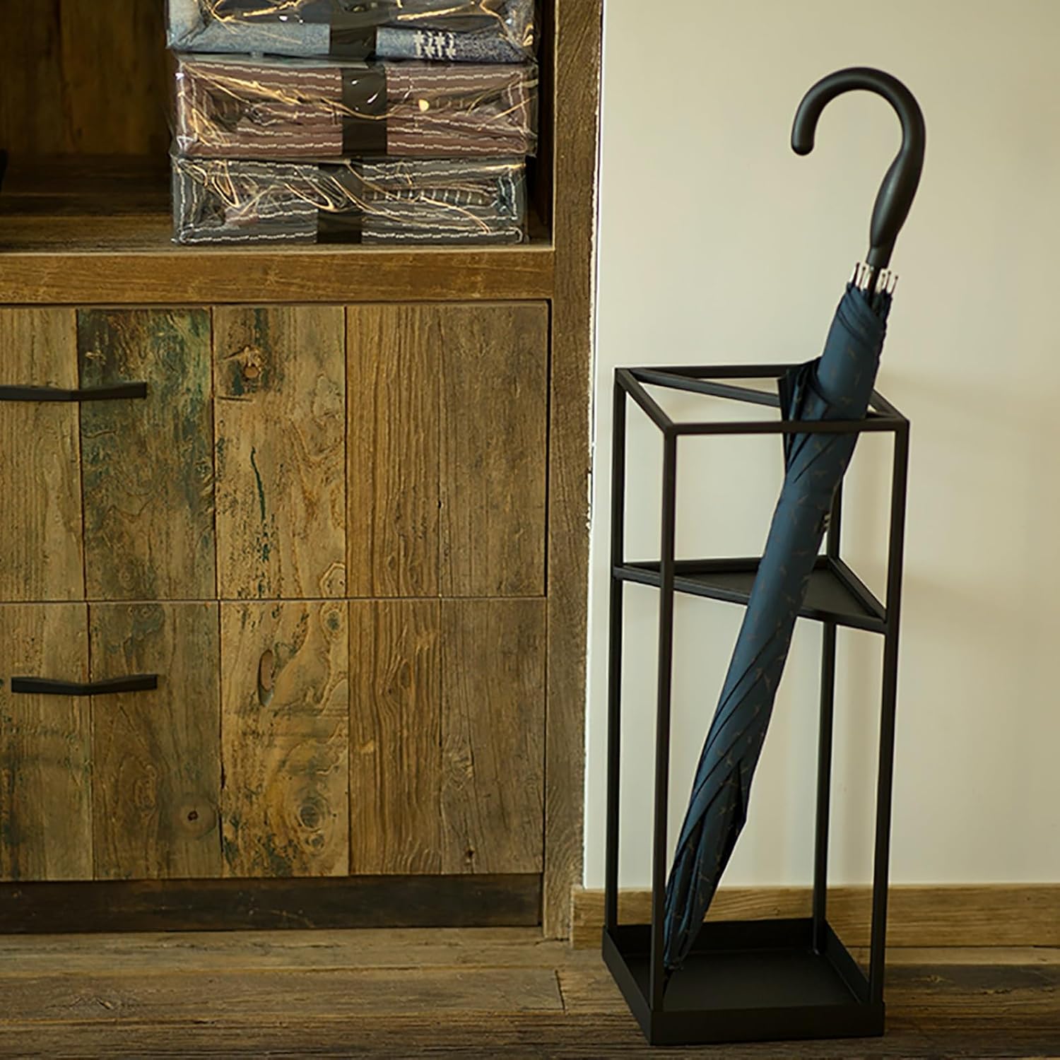 Upgrade your home organization with this stylish and modern umbrella stand, designed to keep your wet umbrellas neatly stored while enhancing your decor. Crafted from durable metal, it offers a contemporary look that complements any entryway or hallway. The integrated shelf provides an ideal space for smaller folding umbrellas, ensuring your rain gear is organized and easily accessible whenever the weather turns. With dimensions of 8.1 x 8.1 x 21 inches, this umbrella holder is compact yet spacious enough to accommodate multiple umbrellas without taking up too much floor space. Available in sleek black, vibrant blue, and eye-catching orange, it allows you to choose a color that best fits your style. Imagine arriving home on a rainy day and effortlessly placing your umbrella in this elegant stand, keeping your floors dry and mess-free. Its minimalist design not only serves a practical purpose but also adds a touch of sophistication to your home. Perfect for use in residential settings, offices, or even cafes, this umbrella stand is a functional accessory that showcases your attention to detail and your commitment to a well-organized space. Please note that measurements are taken manually, and slight variations may occur. Each product photo reflects the actual item, but color differences may arise due to lighting and display settings. Elevate your space with this essential home accessory that embodies both style and functionality.