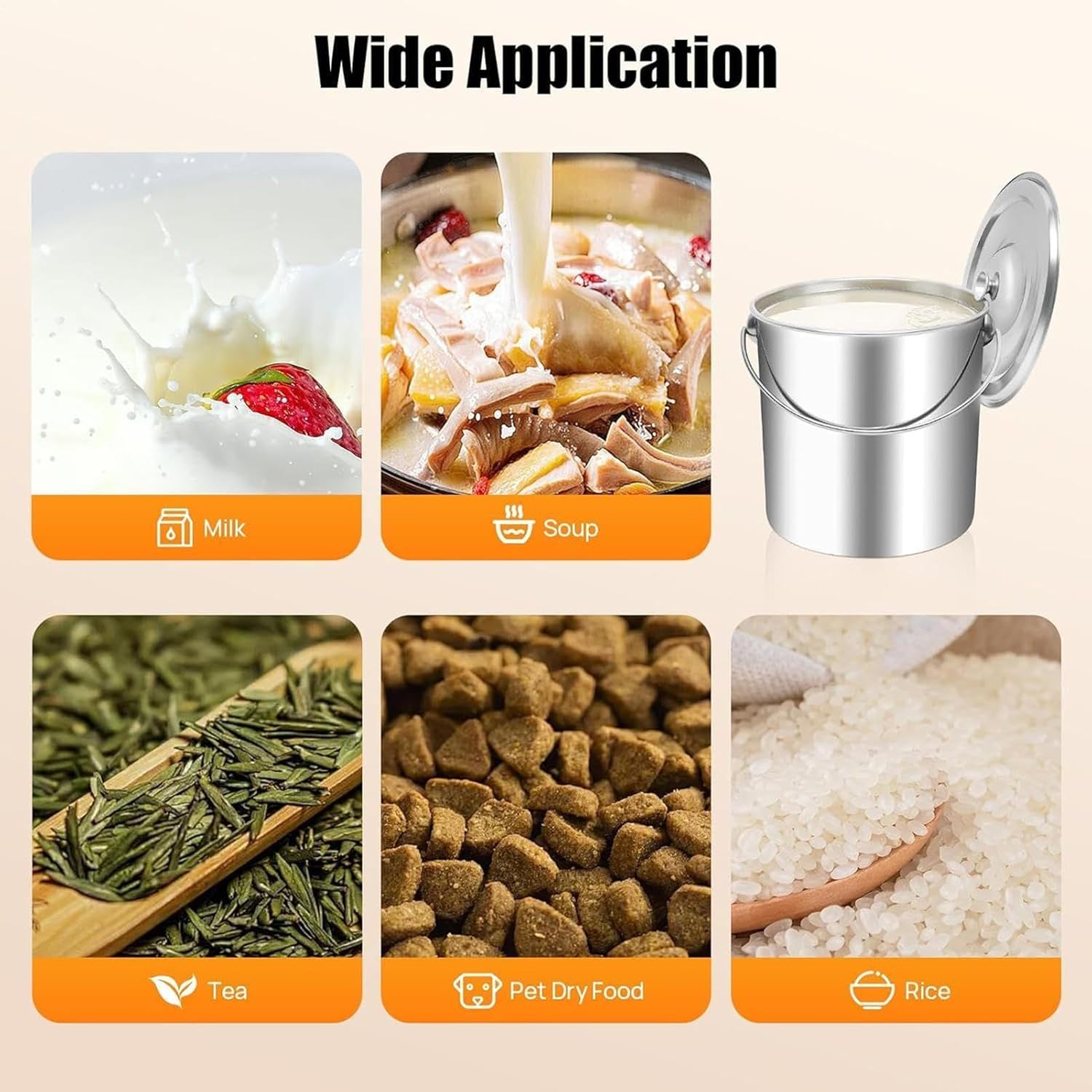 The Kitchen Food Bucket Flour Container is expertly designed from durable stainless steel, ensuring it is a long-lasting addition to your kitchen essentials. This versatile storage solution boasts a generous capacity, making it perfect for organizing flour, cereals, rice, or even pet food. With its practical handle, it is easy to transport and access your ingredients whenever you need them, whether at home, in an apartment, or in a bustling restaurant setting.This multifunctional kitchen pail is not limited to dry goods; it can also accommodate liquids like soup or porridge, making it an ideal choice for a variety of cooking scenarios. Keep your pantry, stovetop, or countertop tidy and efficient with this reliable container that enhances both utility and organization in your cooking space.Its robust construction ensures it withstands daily use in busy kitchens, where convenience and reliability are key. The sleek stainless steel design not only adds a modern touch to your kitchen but also promotes cleanliness and easy maintenance. Elevate your cooking experience with this essential kitchen accessory that simplifies food storage and enhances your culinary endeavors.Specifications:Material: Stainless SteelDimensions/Weight/Capacity:S: 21×21×20cm/8.27×8.27×7.87in, 700g, 6LM: 26×26×25cm/10.24×10.24×9.84in, 950g, 12LL: 31×31×30cm/12.2×12.2×11.81in, 1300g, 20LPackage Includes:Stainless Steel Bucket ×1Notes:1. Due to variations in monitor settings and lighting, the actual color of the product may differ slightly from the images.2. Please allow for slight measurement deviations as all dimensions are manually measured.