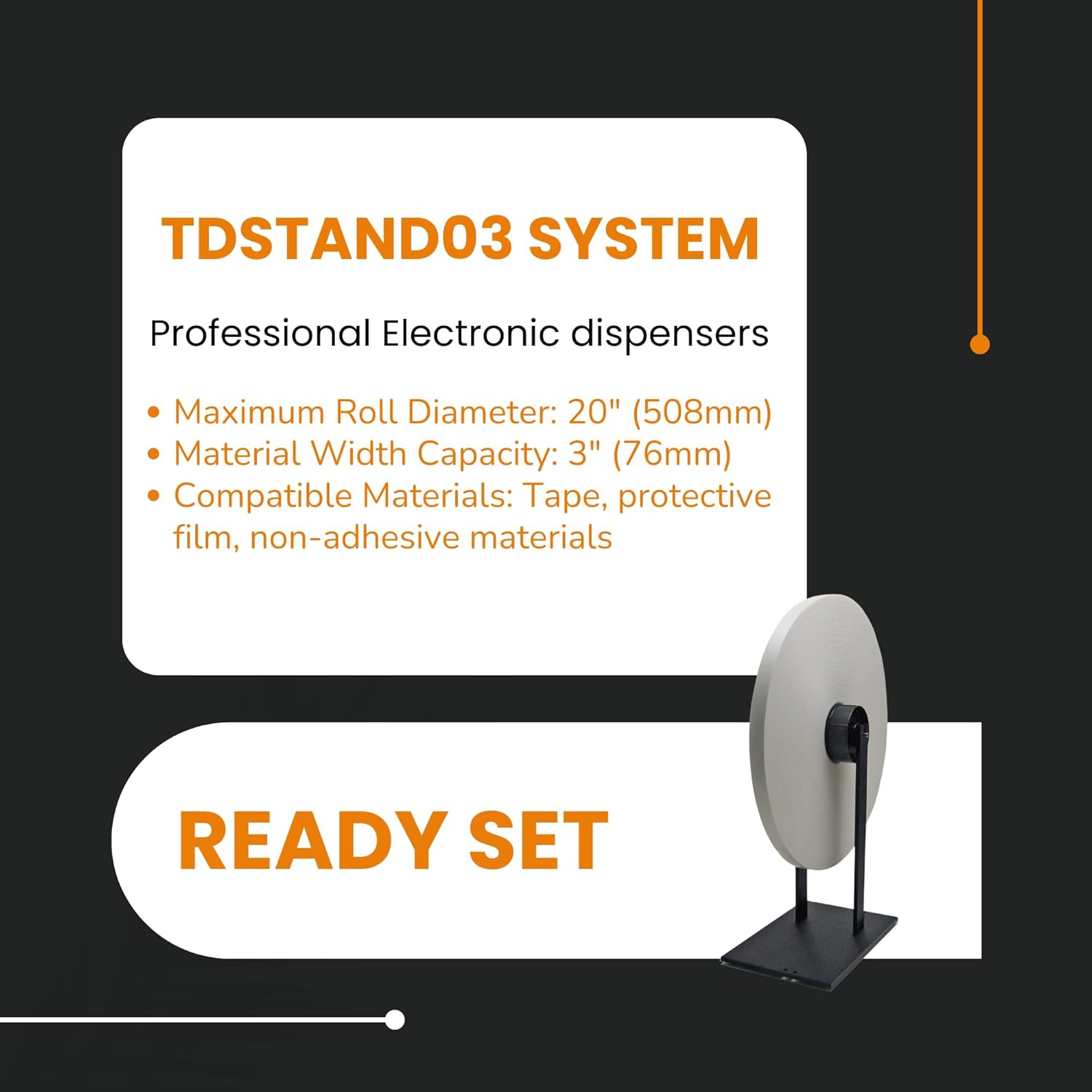 START International TDSTAND03 Large Reel Stand, 20" Roll Dia, 3" WidthTransform your workspace efficiency with the START International TDSTAND03 External Reel Stand, designed to maximize your electronic tape dispensers potential. This industrial-grade accessory enables seamless operation with larger diameter rolls, dramatically improving production efficiency and reducing downtime.Key Features:High-Capacity Design: This large reel stand accommodates rolls up to 20 inches in diameter and 3 inches in width, providing extended operational time for busy production environments. Robust construction ensures stable support for heavy industrial rolls.Universal Compatibility: Engineered for use with electronic dispensers handling tape, protective film, non-adhesive materials, and labels. Specifically designed for TDA080 series dispensers, ensuring perfect integration with your existing equipment setup.Professional Applications: Ideal for packaging operations, shipping departments, manufacturing facilities, and industrial environments where consistent tape dispensing is critical. Supports various material types including adhesive tapes, protective films, and specialty materials.Enhanced Productivity: By enabling larger roll usage, this tape dispenser stand reduces roll change frequency, minimizing production interruptions. The semi-automatic operation maintains a smooth workflow while the manual power source eliminates electrical complexity.Reliable Performance: Built with durability in mind, this external tape stand delivers consistent performance in demanding industrial settings. Stable base design prevents tipping while accommodating the weight and size of large industrial rolls.This tape reel holder represents the perfect solution for operations requiring enhanced dispensing capacity and improved workflow efficiency.
