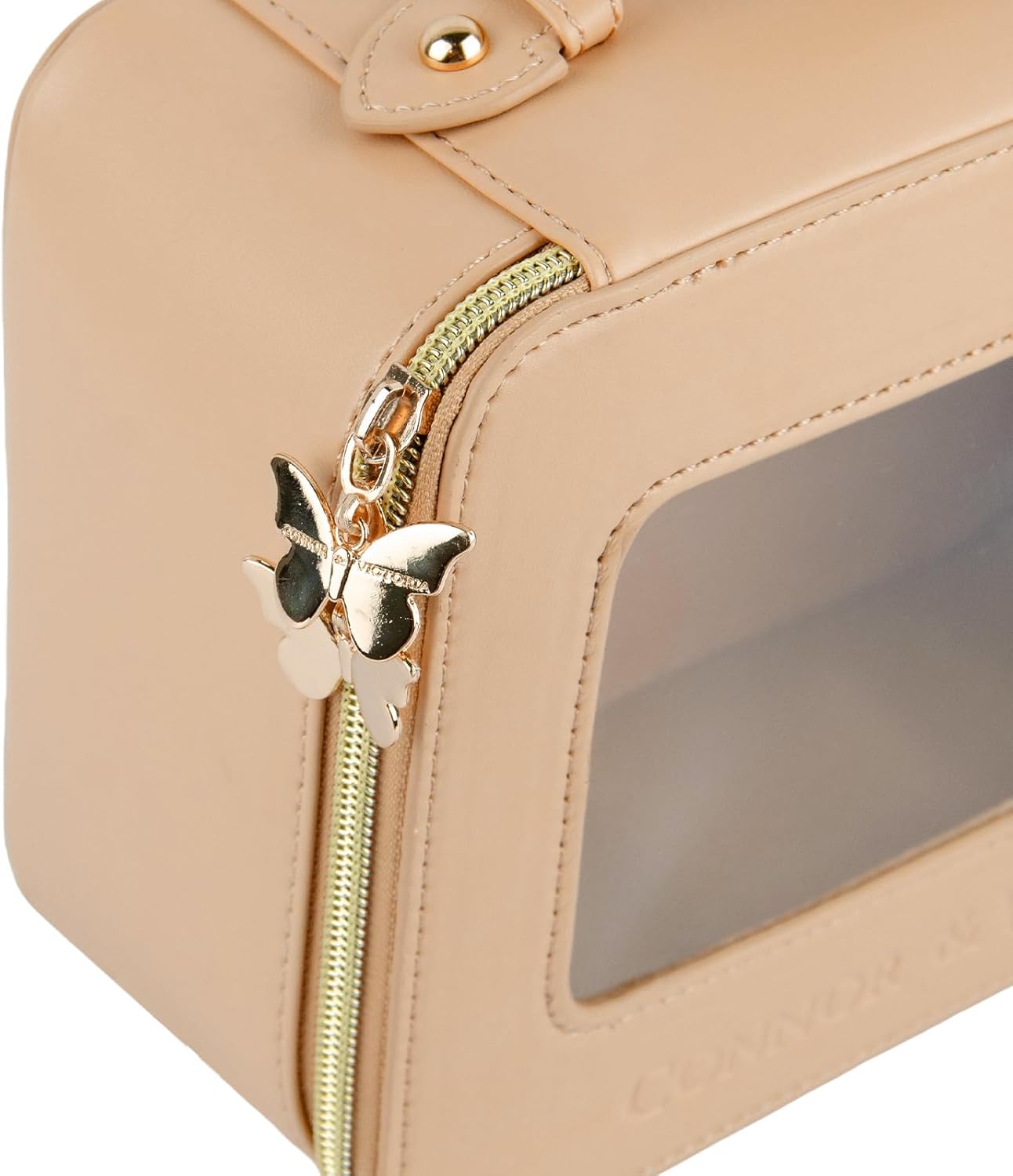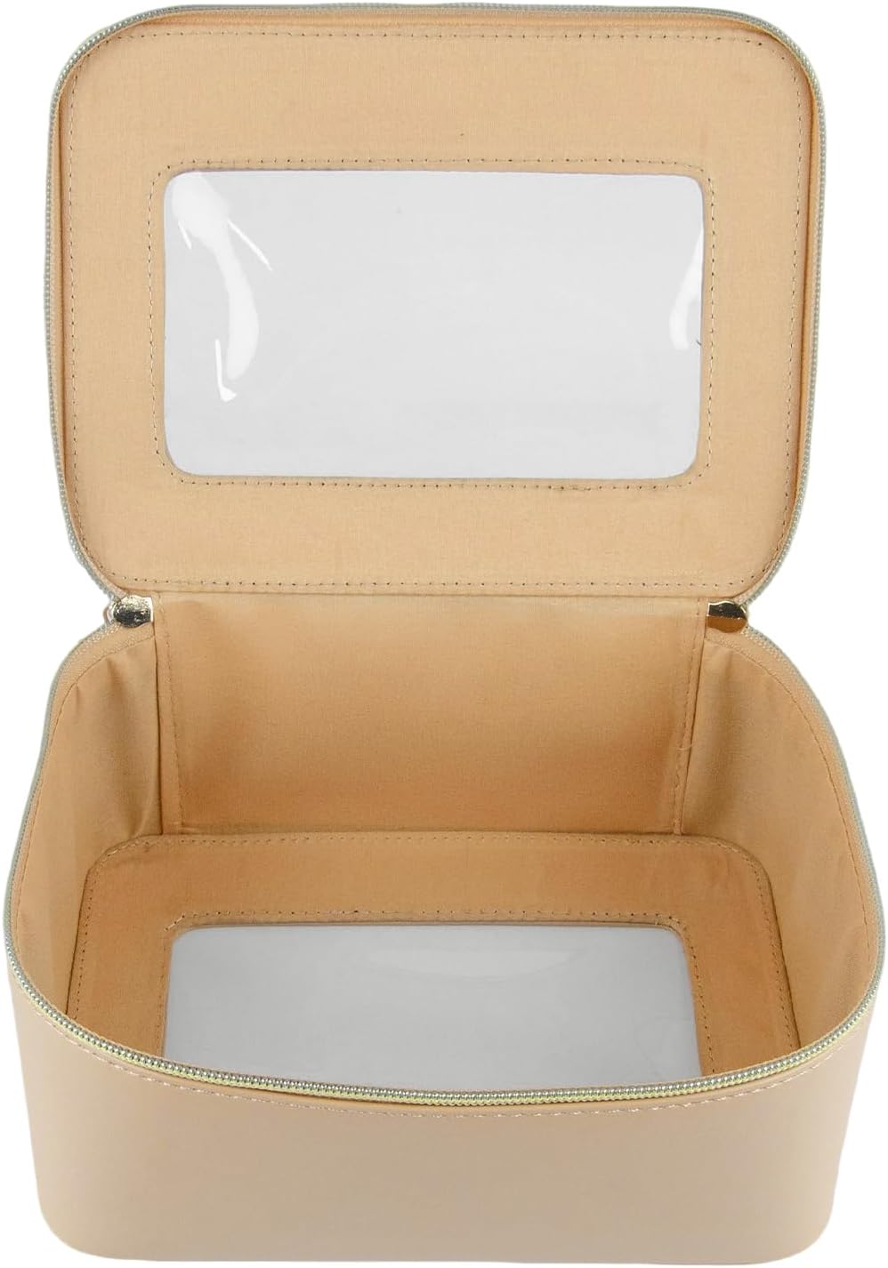 Elevate your beauty organization with this sophisticated black leather cosmetic case. Featuring a practical clear window display, this travel-ready makeup organizer lets you instantly locate your essentials without opening the case. The premium gold zipper adds an elegant touch while ensuring secure closure. Measuring 8.5 x 6.5 x 3.7 inches, this case provides ample space for your cosmetics while maintaining a compact, travel-friendly profile. The durable leather construction offers protection for your beauty items, while the thoughtful design includes a convenient top handle for easy carrying. Perfect for both daily use and travel, this versatile case keeps your makeup organized and easily accessible. The clear window panel allows for quick identification of contents, making it ideal for busy mornings or on-the-go touch-ups.