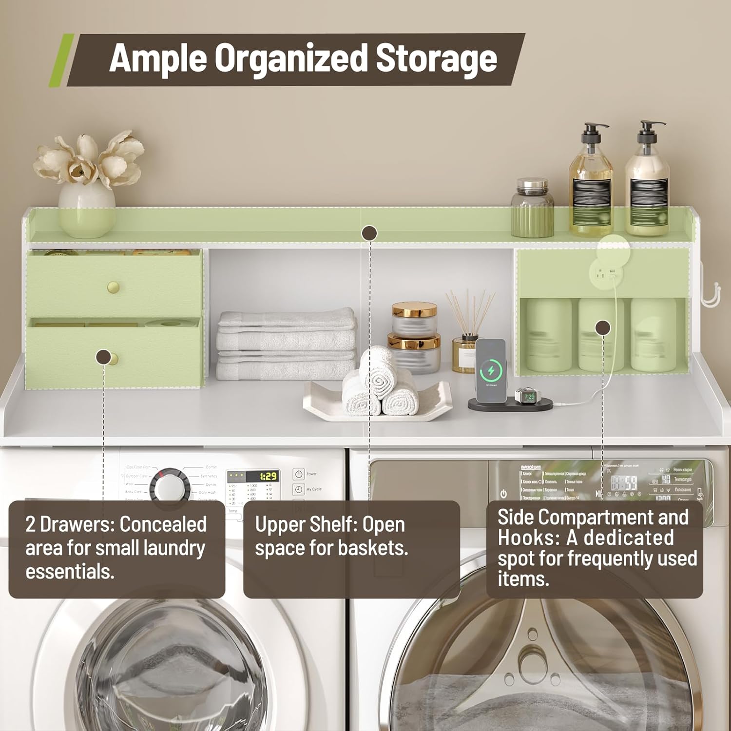 STHYTON Washer and Dryer Countertop with Charging Station, Electric Heated Blanket Throw 50"x60", 2-Titer Large Laundry Countertop with Hooks and Non-Slip Pads, Soft Cozy Flannel & Sherpa Fabric Dual-Sided