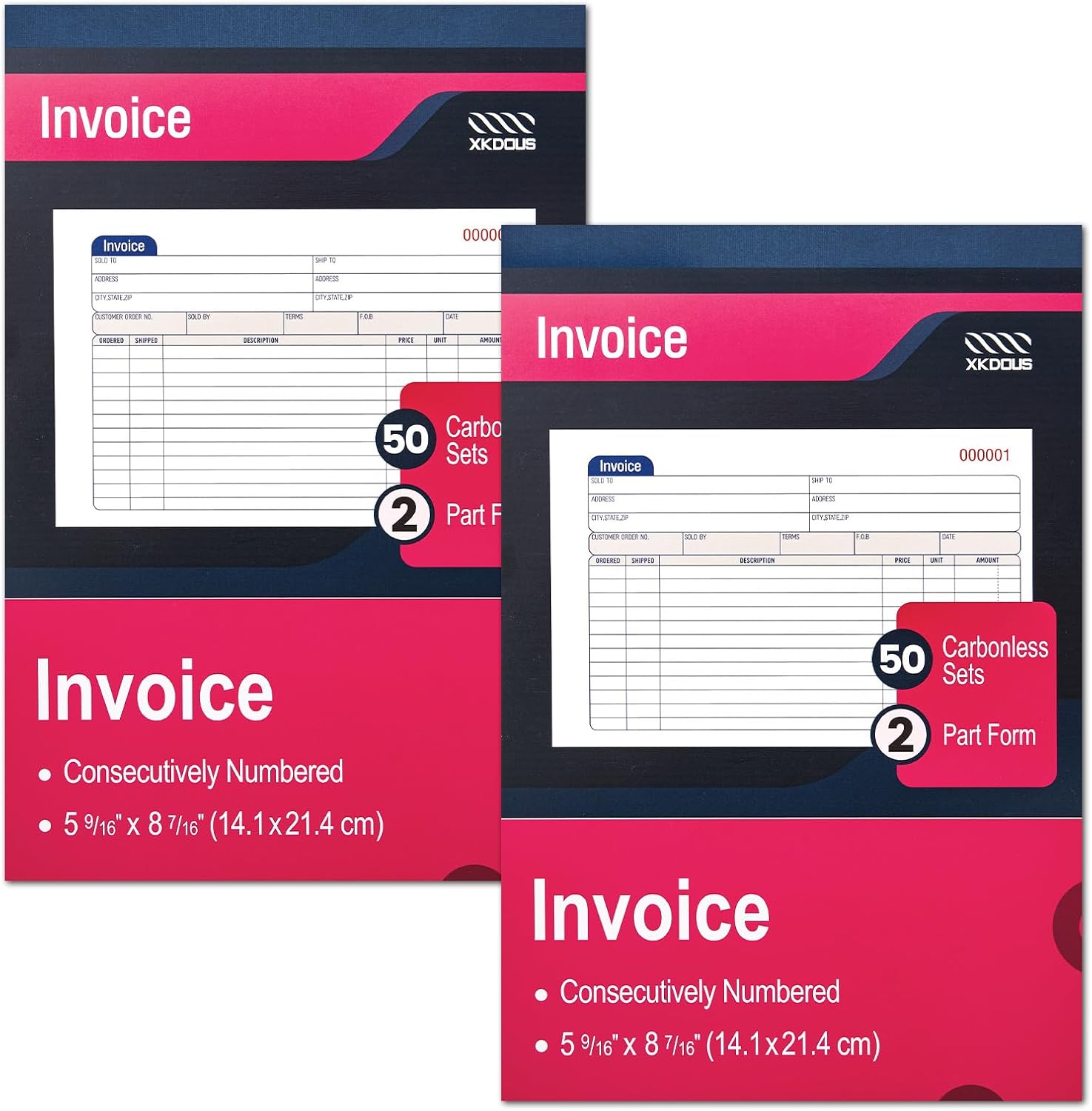 High Quality Material:This invoice book is made with high quality paper material that will feel very smooth when writing.Easy To Use:Each set of invoice receipt book has a tear aid line at the top, allowing you to tear off invoices faster and better, protecting the integrity of your invoices.Suitable Size:The 5-9/6" x 8-7/16" invoice receipt book is easy to carry around for use in the workplace or on business trips.Invoice Book For Small Business:Lists descriptions, quantities, amounts and units for up to 12 sales items, recording customer name, shipping, order number and salesperson.