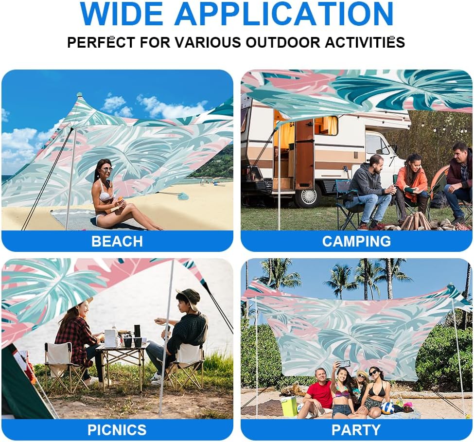 | Coverage | Sun and wind protection with UPF 50+ fabric and filled sandbag for wind resistance |